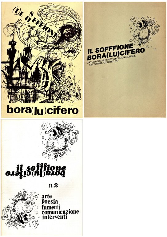 Con allusione alle "emissioni violente di vapore acqueo ad alta pressione e temperatura" "il Soffione non è solo l'espressione culturale del proletariato detenuto, ma è uno strumento accessibile a chi si pone in antagonismo al modo di produzione capitalistico; con la lotta, la ricerca e l'espressione di linguaggi trasgressivi". Da un'idea di Vincenzo Solli la rivista raccoglie contributi poetici e fumetti dei detenuti politici nelle carceri speciali, per la maggior parte militanti delle Brigate Rosse. L'introduzione è attribuita a Renato Curcio, anche se firmata "Alcuni compagni di Palmi", Lauro Azzolini è l'autore delle copertine di due numeri, contiene numerose fotografie e illustrazioni in B/N nel testo. Tra i numerosi collaboratori Loris Tonino Parioli, Lauro Azzolini, Agrippino Costa, Enzo Fontana, Horst Fantazzini, Alberto Franceschini e Sante Notarnicola, il primo nella lista dei 13 detenuti di cui era stata richiesta la liberazione in cambio della vita di Aldo Moro. Rarissima e in ottimo stato.