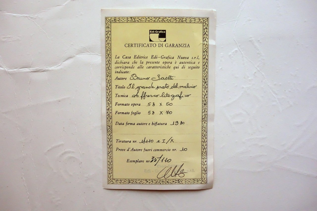Bruno Saetti Affresco Litografico Prato del Mulino Originale Certificato 1980 | Libri antichi e moderni |