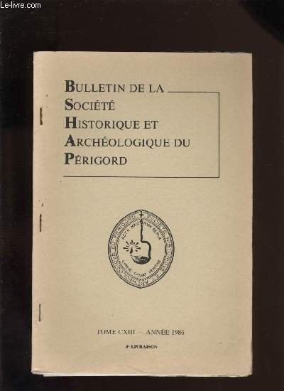 Bulletin de la société Historique et Archéologique du Périgord. Tome CXIII - Livraison n° 4
