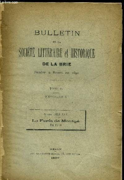BULLETIN DE LA SOCIETE LITTERAIRE ET HISTORIQUE DE LA BRIE TOME IV FASCICULE V - TIRE A PART : LA FORET DE MONTGE EN 1778.