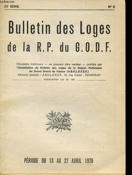 BULLETIN DES LOGES DE LA R.P. DU G.O.D.F. - 23e s�rie n�8 - p�riode du 13 au 27 avril | Libri antichi e moderni | A.B.U.L.O.R.E.P