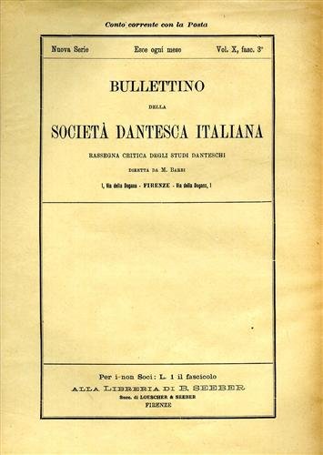 Bullettino della Società Dantesca Italiana. Nuova serie, 1902-903, vol.X, fasc.1-2,3,4,5-6,7,8-9,10,11,12. | Libri antichi e moderni |