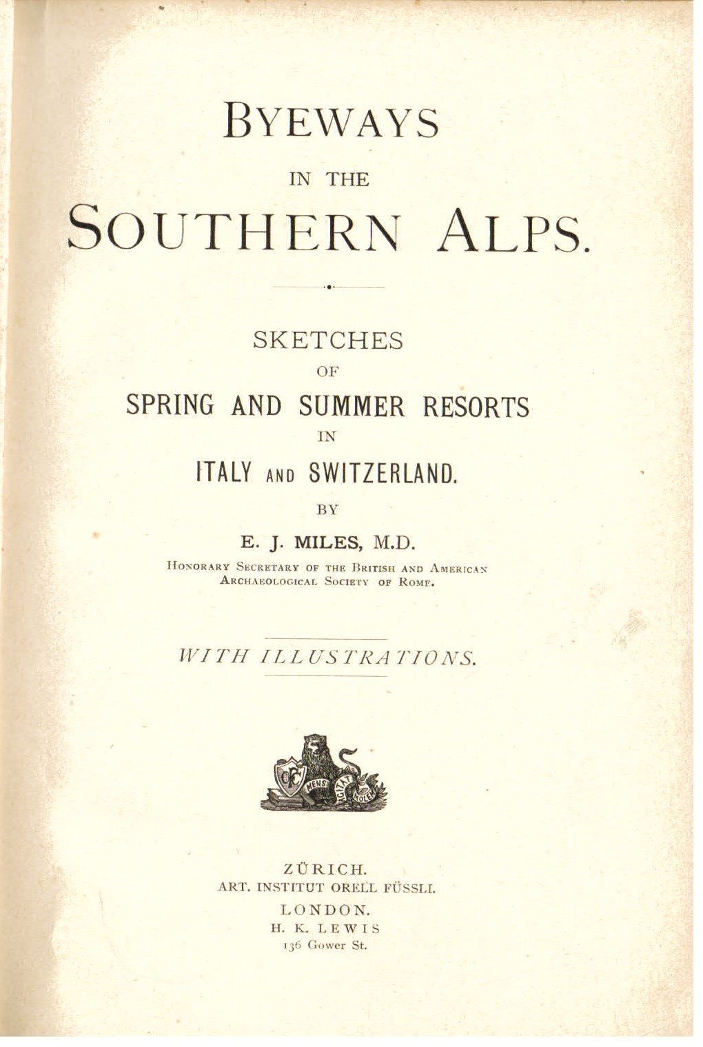 Byeways in the Southern Alps. Sketches of spring and summer resorts in Italy and Switzerland. With illustrations