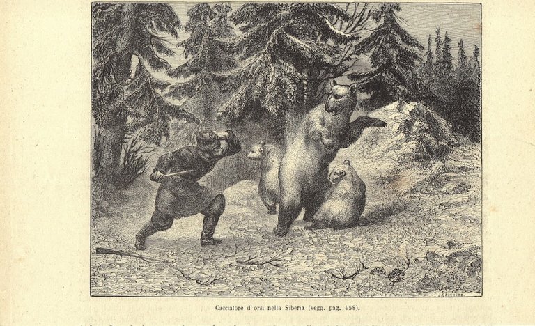 Cacciatore d'orsi nella Siberia. Stampa 1863.