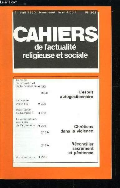 Cahiers de l'actualit� religieuse et sociale n� 202 - La route du souvenir et de la promesse, La presse socialiste, Insurrection au Salvador ?, La participation aux fruits de l'expansion, R�concilier sacrement et p�nitence
