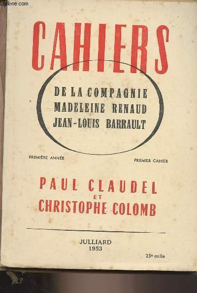 Cahiers de la compagnie Madeleine Renaud, Jean-Louis Barrault - 1re ann�e 1er cahier - Paul Claudel et Christophe Colomb