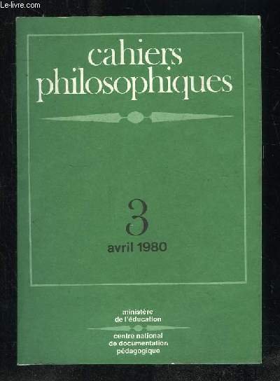 CAHIERS PHILOSOPHIQUES N° 3 AVRIL 1980. SOMMAIRE: LA PHILOSOPHIE ET CE QUI N EST PAS ELLE, LA CLASSE DE PHILOSOPHIE. | Libri antichi e moderni | Ministere De L Education.