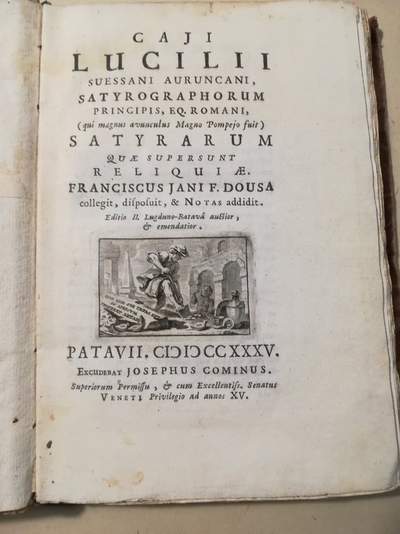 Caji Lucilii Suessani Auruncani, Satyrographorum principis, eq. romani (qui magnus avunculus Magno Pompejo fuit) Satyrarum quae supersunt reliquiae. Franciscus Jani F. Dousa collegit, disposuit, & Notas addidit. Editio II. Lugduno-Batava auctior, & emendatur | Libri antichi e moderni | LUCILIO