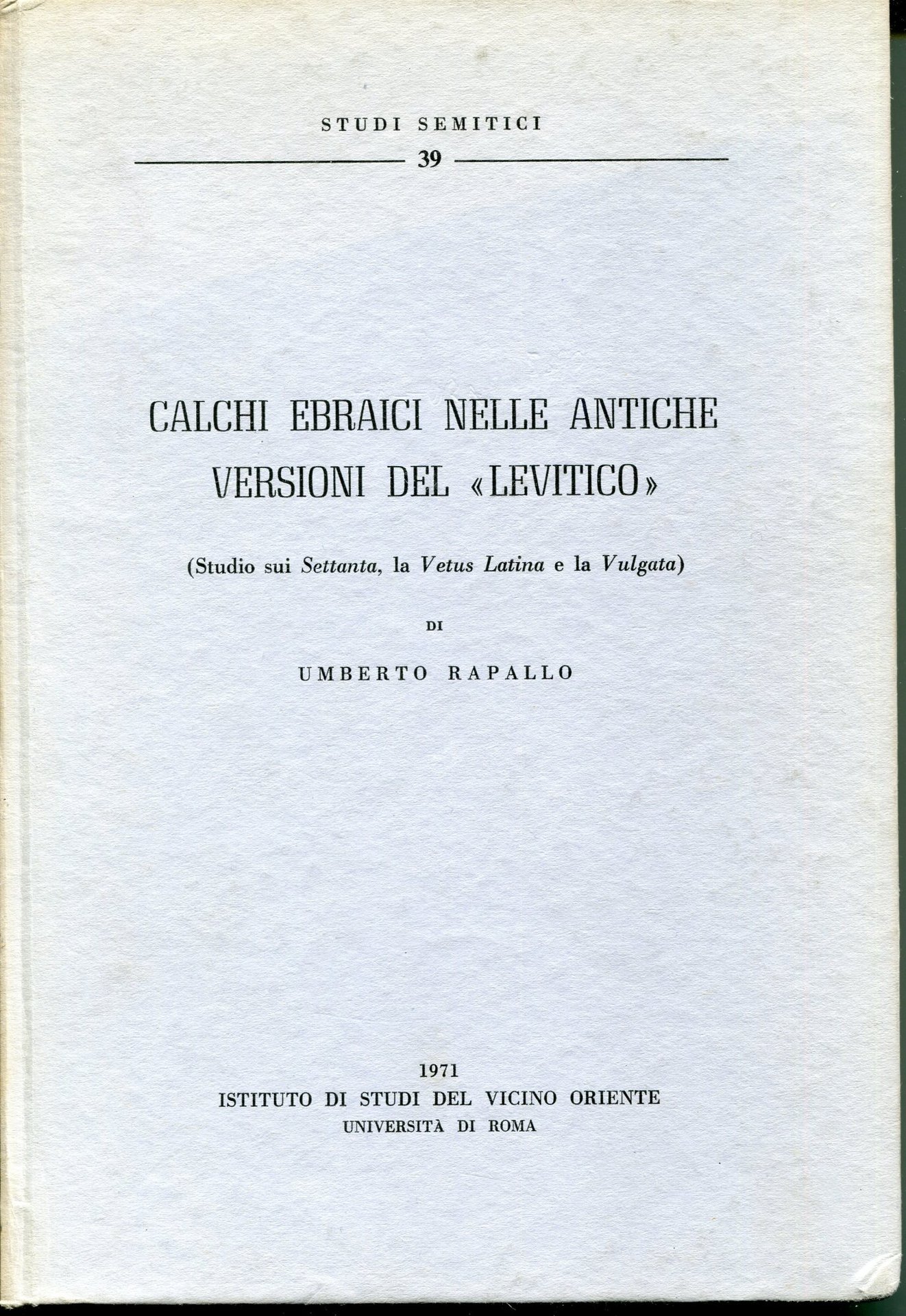 Calchi ebraici nelle antiche versioni del Levitico. Studio sui Settanta, la Vetus Latina e la Vulgata | Libri antichi e moderni | Rapallo Umberto, ,Rapallo Umberto