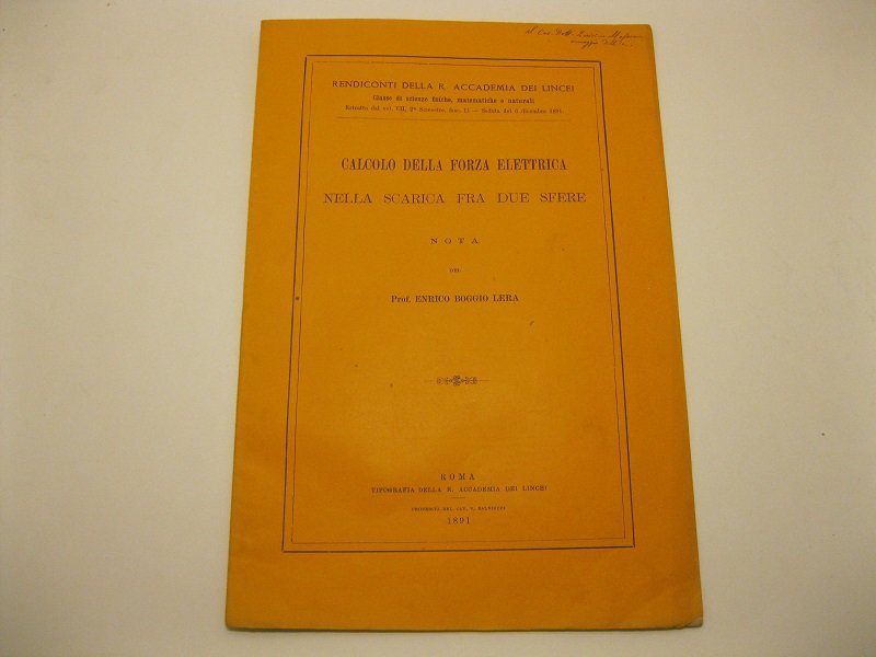 Calcolo della forza elettrica nella scarica fra due sfere. Nota | Libri antichi e moderni | Boggio Lera Enrico