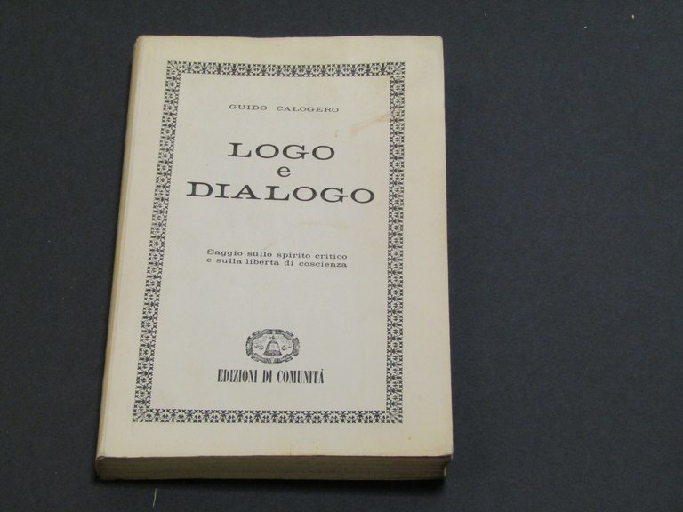 Calogero Guido. Logo e dialogo. Saggio sullo spritito critico e sulla libertà di coscienza. Edizioni di Comunità. 1950-I - In 8 - Brossura - pp 244 - buono -con pubblicità editoriale - macchie di umidità