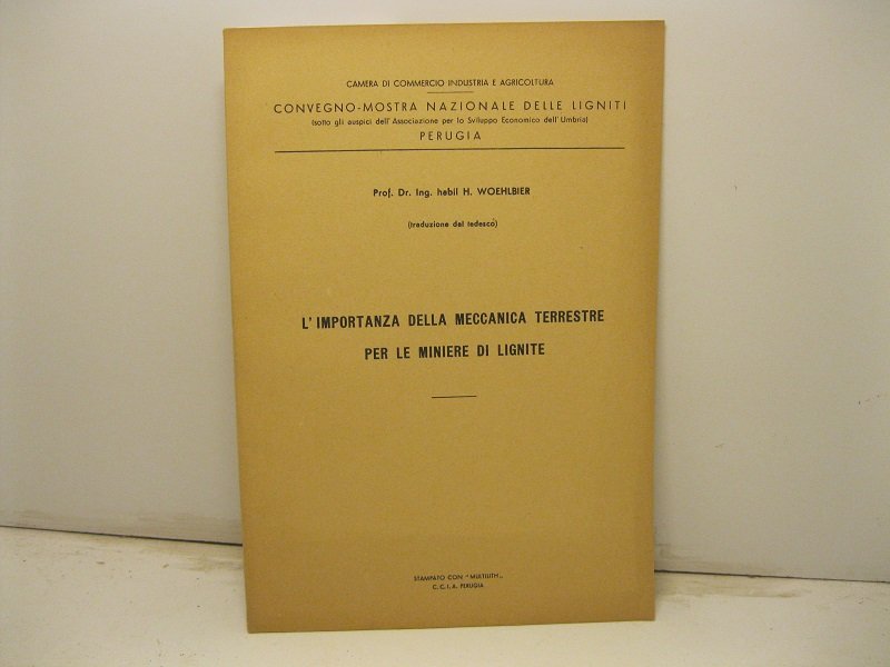 Camera di commercio industria e agricoltura. Convegno-mostra nazionale delle ligniti. Perugia. L'importanza della meccanica terrestre per le miniere di lignite | Libri antichi e moderni | Woehlbier H.