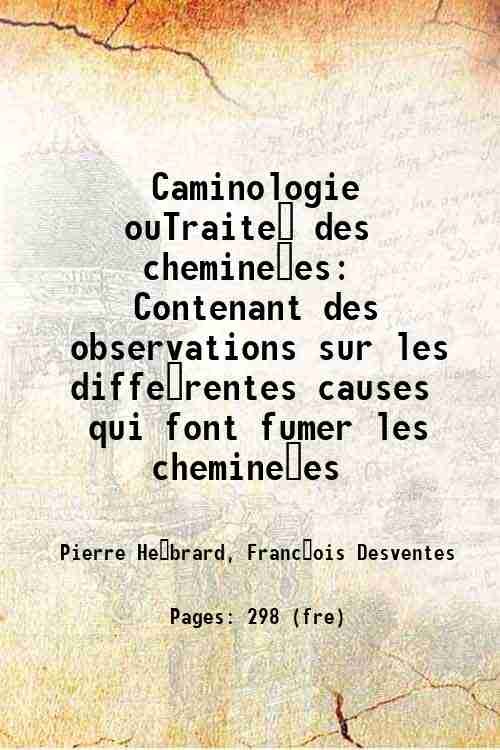 Caminologie ouTraite? des chemine?es Contenant des observations sur les diffe?rentes causes qui font fumer les chemine?es 1756