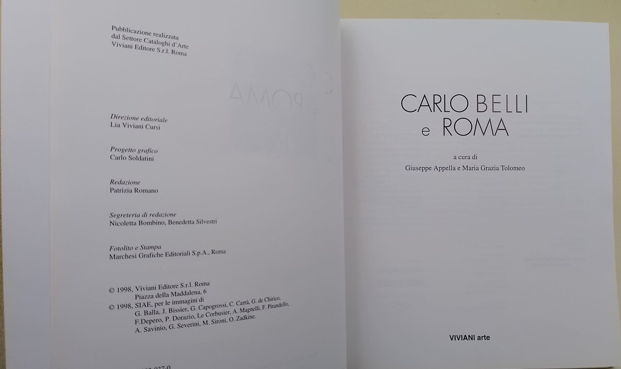 Carlo Belli e Roma | Libri antichi e moderni | Appella, G.- Tolomeo, M. Grazia