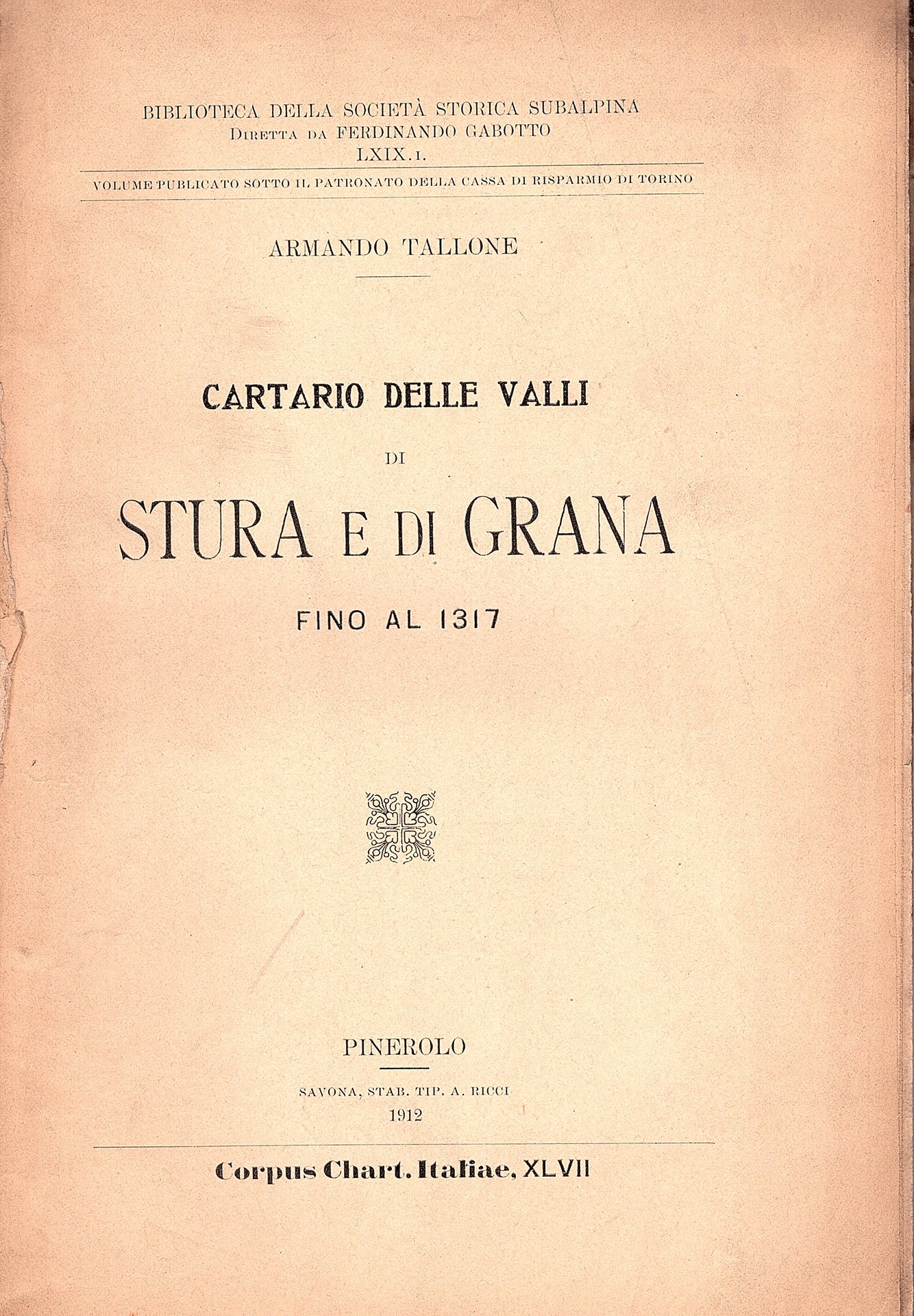 Cartario delle Valli di Stura e di Grana fino al 1317 | Libri antichi e moderni | Tallone Armando