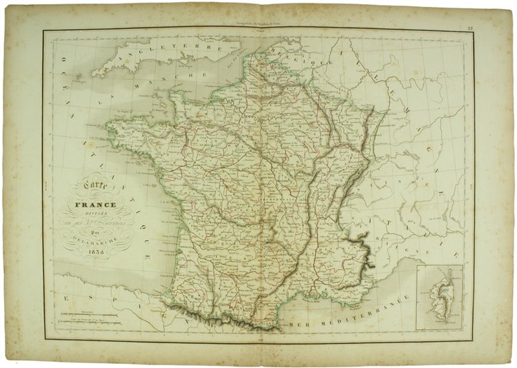 CARTE DE FRANCE DIVISEE EN SES 32 PROVINCES - 1838 couleurs | Libri antichi e moderni | Delamarche C.F.