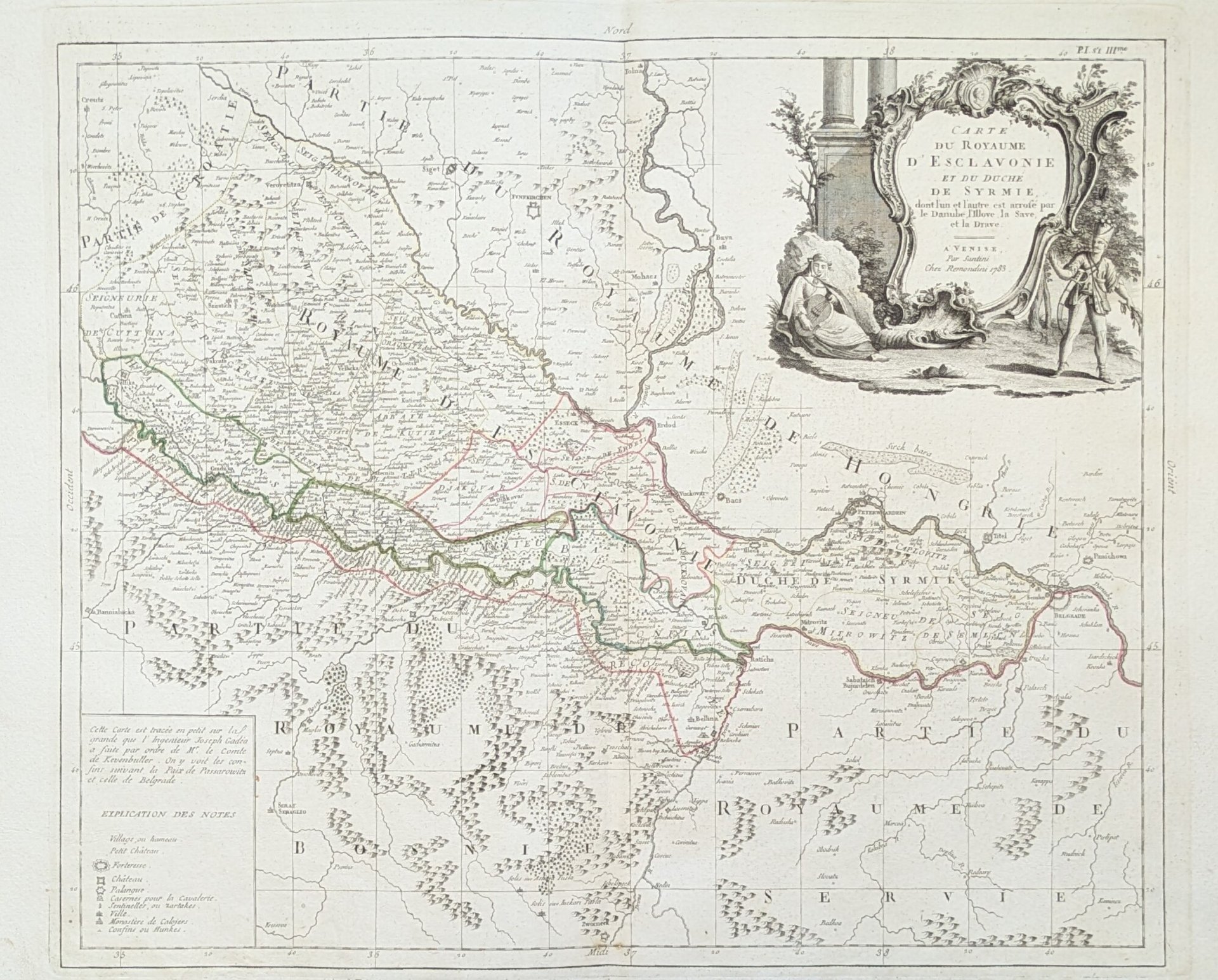 CARTE DU ROYAUME D'ESCLAVONIE ET DU DUCHE' DE SYRMIE, DONT L'UN ET L'AUTRE EST ARROSE' PAR LE DANUBE, L'ILLOVE, LA SAVE ET LA DRAVE