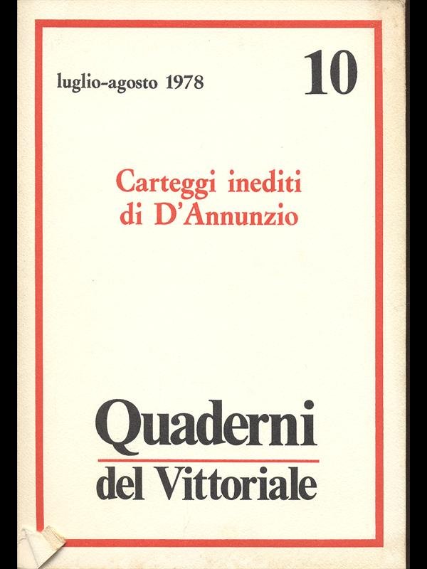Carteggi inediti di D'Annunzio - Quaderni del Vittoriale n10 | Libri antichi e moderni | aa.vv.