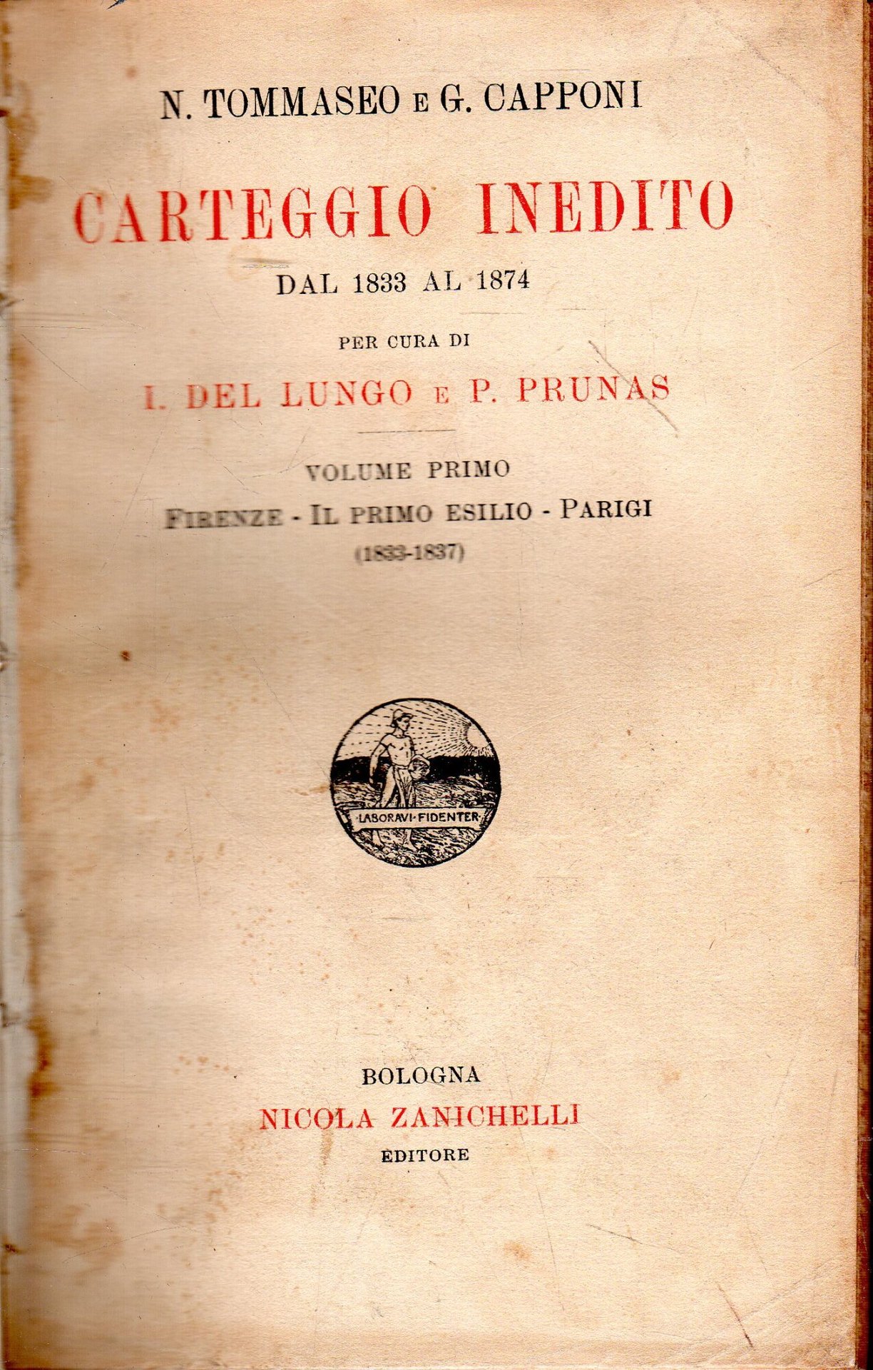 Carteggio Inedito. Dal 1833 al 1874 (5 volumi) (PRIMA EDIZIONE!) | Libri antichi e moderni | Niccolò Tommaseo, G. Capponi, ,Niccolò Tommaseo, G. Capponi
