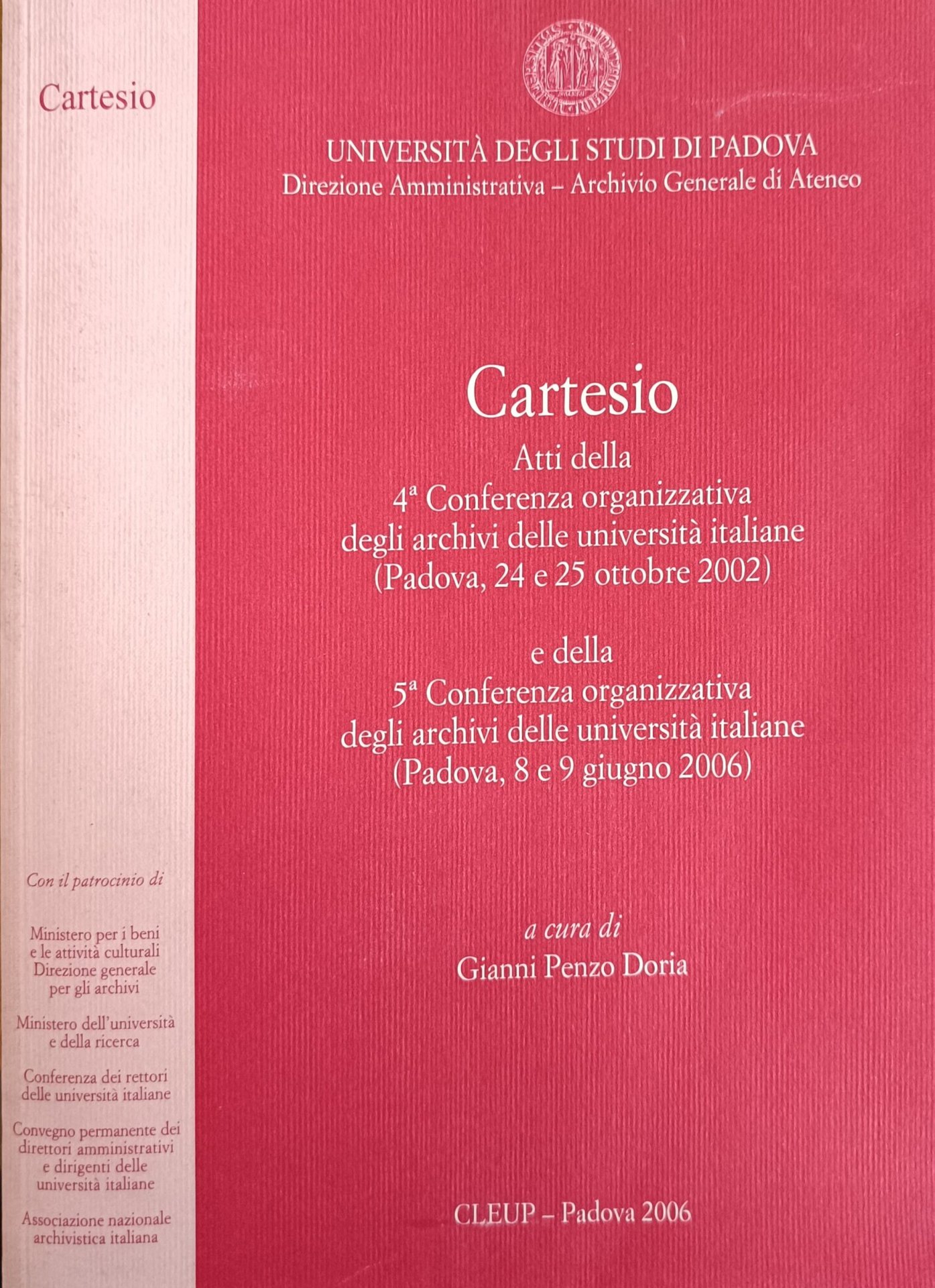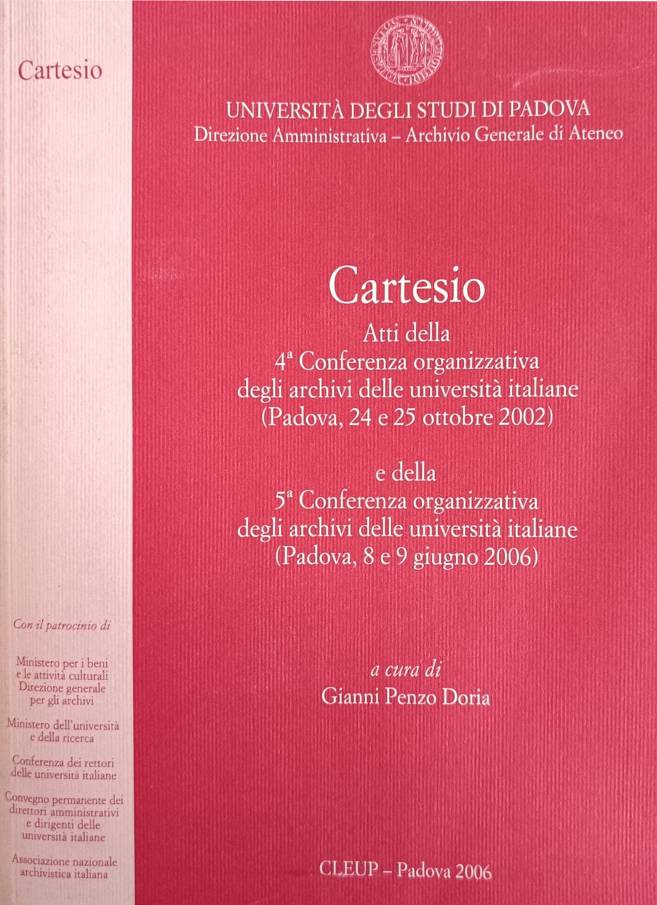 Atti della IV conferenza organizzativa degli archivi delle università italiane (Padova, 24 e 25 ottobre 2002) e della V conferenza organizzativa degli archivi delle università italiane (Padova, 8 e 9 giugno 2006) in ottavo leg. bross. pp. 642 Buono (Good) Buon es..