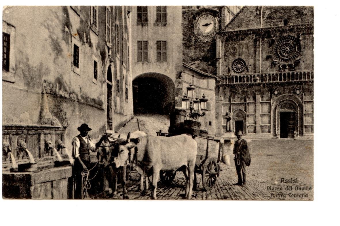 Cartolina Assisi Piazza del Duomo Antica Fontana non viaggiata Perugia carretto