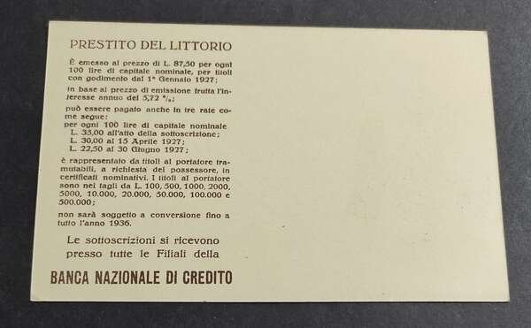 Cartolina Banca Nazionale di Credito - Prestito del Littorio | Libri antichi e moderni |