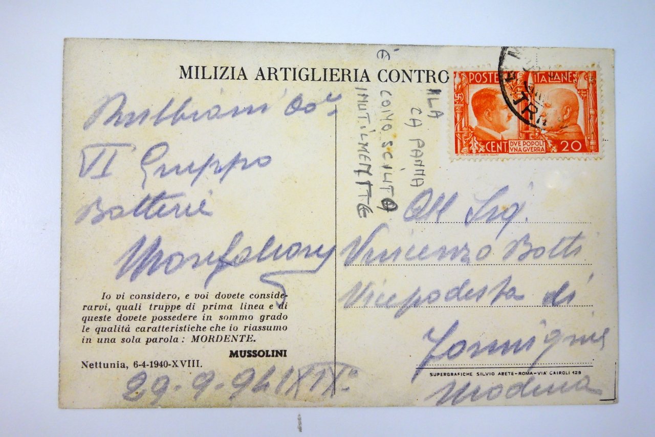 Cartolina Milizia Artiglieria Controaerei IV contraerea viaggiata 1941 Pisani | Libri antichi e moderni |