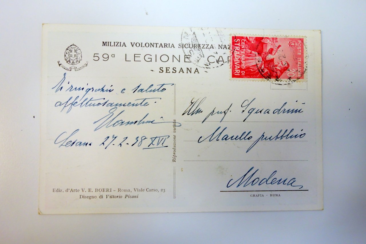 Cartolina Milizia Volontaria S.N. 59a Legione Carso Sesana viaggiata 1938 Pisani | Libri antichi e moderni |