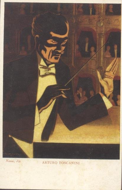 Cartolina pubblicitaria de "La Voce del padrone" raffigurante il Maestro Arturo Toscanini, da bozzetto di Giovanni Nanni. 1920 circa. | Libri antichi e moderni |