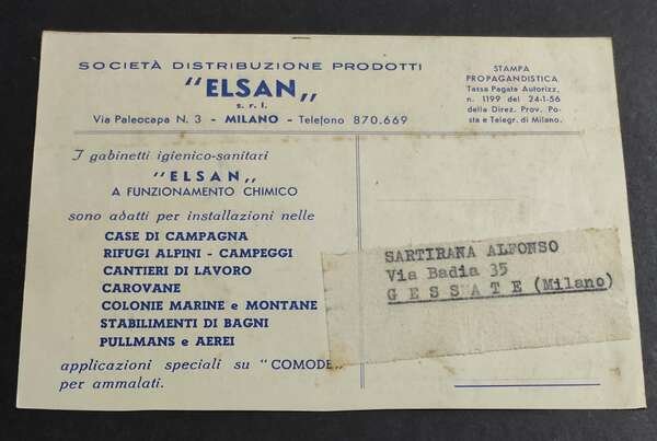 Cartolina Pubblicitaria "Elsan" I Gabinetti Igienico-Sanitari | Libri antichi e moderni |