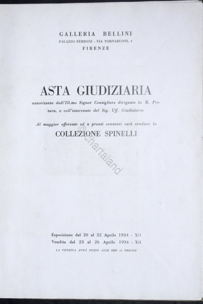 Catalogo d'Asta Galleria Bellini - Firenze - Collezione Spinelli - 1934