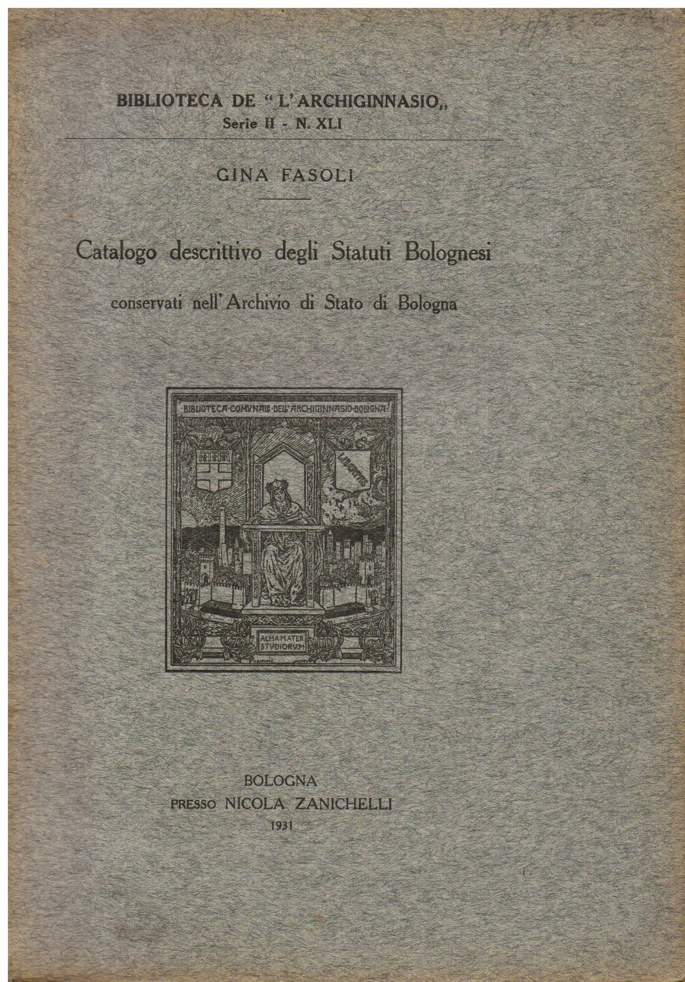 Catalogo descrittivo degli Statuti Bolognesi conservati nell' Archivio di Stato di Bologna