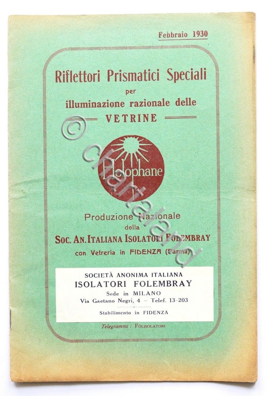 Catalogo illustrato Holophane - Riflettori prismatici speciali per vetrine 1930