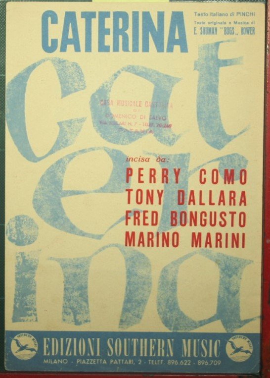 Fox moderato. Canto mandolino o fisarmonica - Testo italiano di Pinchi. Testo originale e musica di E. Shuman 'Bugs' Bower - in 8° - pp.1 foglio nn. - Brossura editoriale illustrata