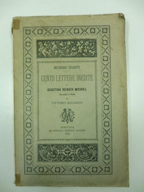Cento lettere inedite a Giustina Renier Michiel. Proemio e note di Vittorio Malamani | Libri antichi e moderni | Cesarotti Melchiorre