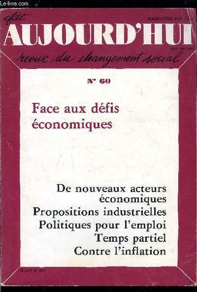 CFDT Aujourd'hui n� 60 - Le syndicat peut-il devenir un acteur �conomique ? par Hugues Bertrand, Lutter contre l'inflation par Alexandre Bilous, Intervenir sur les politiques industrielles par Jean Pierre Huiban, Pour ou contre le travail a temps partiel
