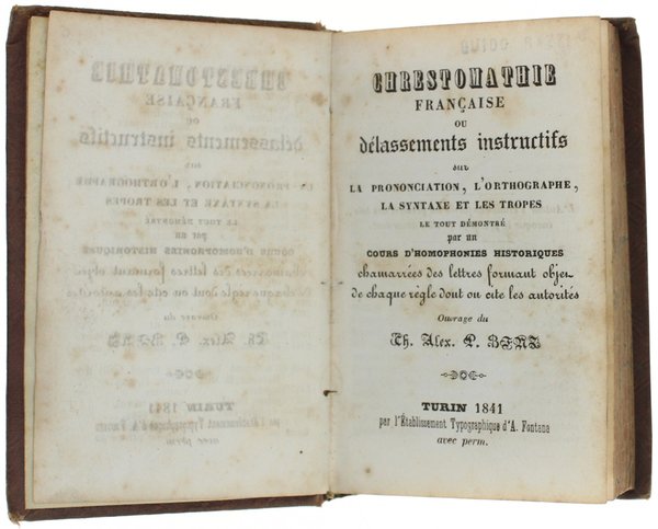 CHRESTOMATHIE FRANÇAISE ou DELASSEMENTS INSTRUCTIFS SUR LA PRONONCIATION, L'ORTHOGRAPHIE, LA SYNTAXE ET LES TROPES. Le tout démontré par un cours d'homophonies historiques. | Libri antichi e moderni | Benz Alex.P.