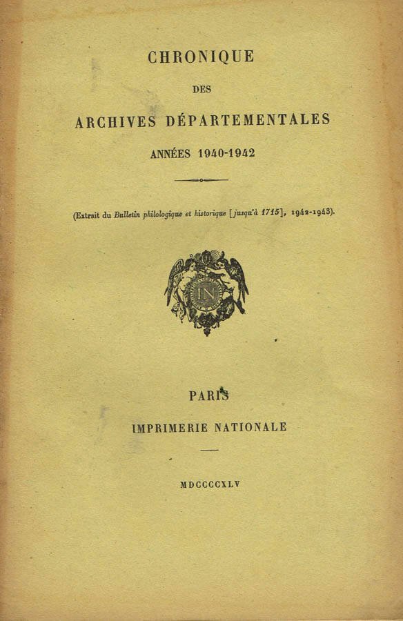 CHRONIQUE DES ARCHIVES DEPARTEMENTALES | Libri antichi e moderni |