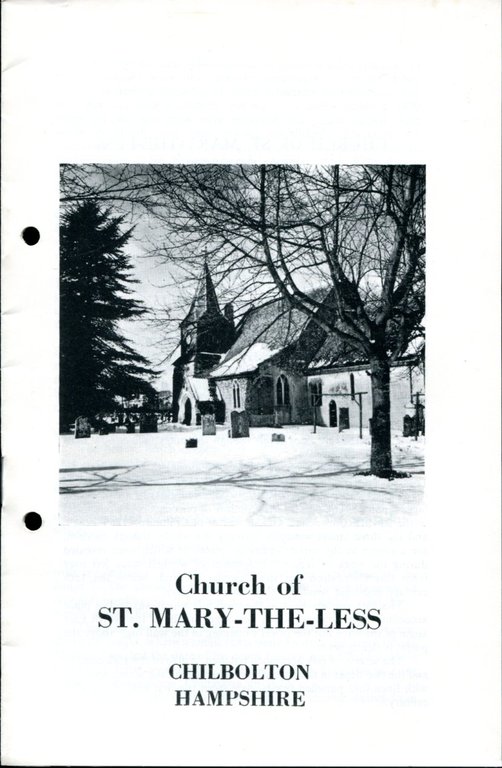 No marks or inscriptions. No creasing to covers. A very clean very tight copy with bright unmarked boards and no bumping to corners. Hole punched for storage in ring binder. 16pp. History of the church of St Mary-the-Less at Chilbolton, Hampshire. Scarce.