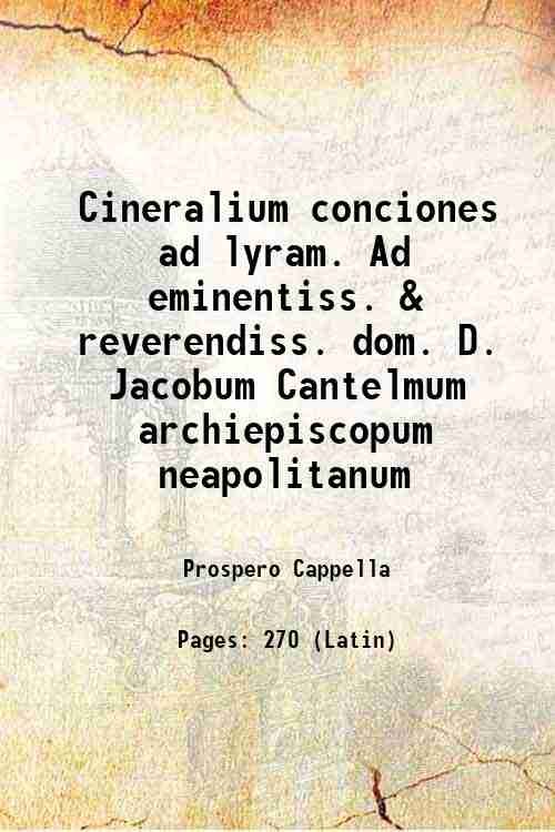 Cineralium conciones ad lyram. Ad eminentiss. & reverendiss. dom. D. Jacobum Cantelmum archiepiscopum neapolitanum 1699