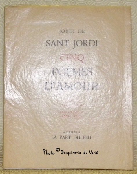 Cinq poèmes d’amour. Préface de Jean Cassou. Traduction de René Nelli. | Libri antichi e moderni | Sant Jordi, Jordi De.