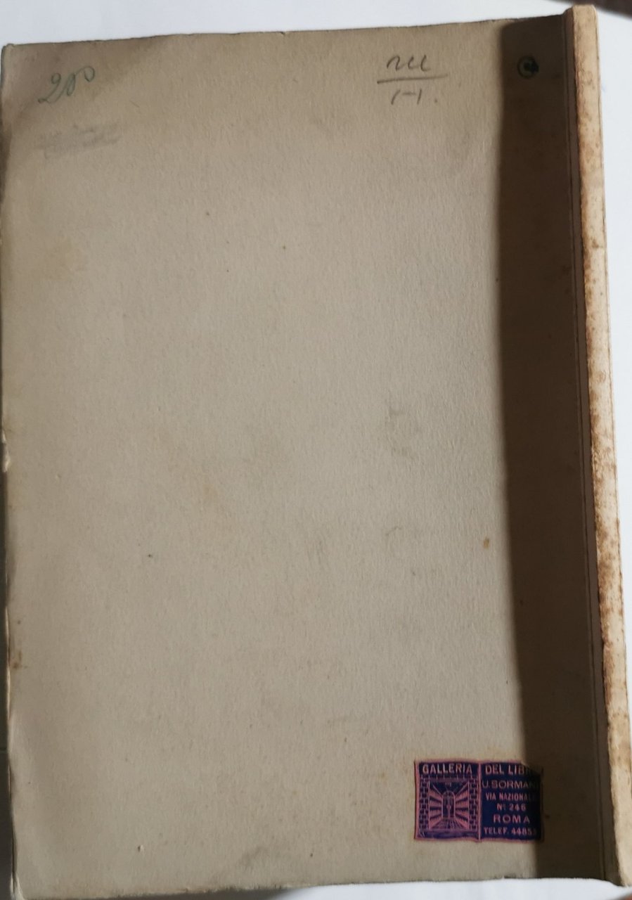 In 8', br.ed., pp.62; fioriture al dorso, macchiolina d'inchiostro al piatto ant., interno in buono stato, ordinari segni del tempo. ***Due to bureaucratic reasons, books dated over 70 years old cannot be immediately exported, please contact us before placing the order.***