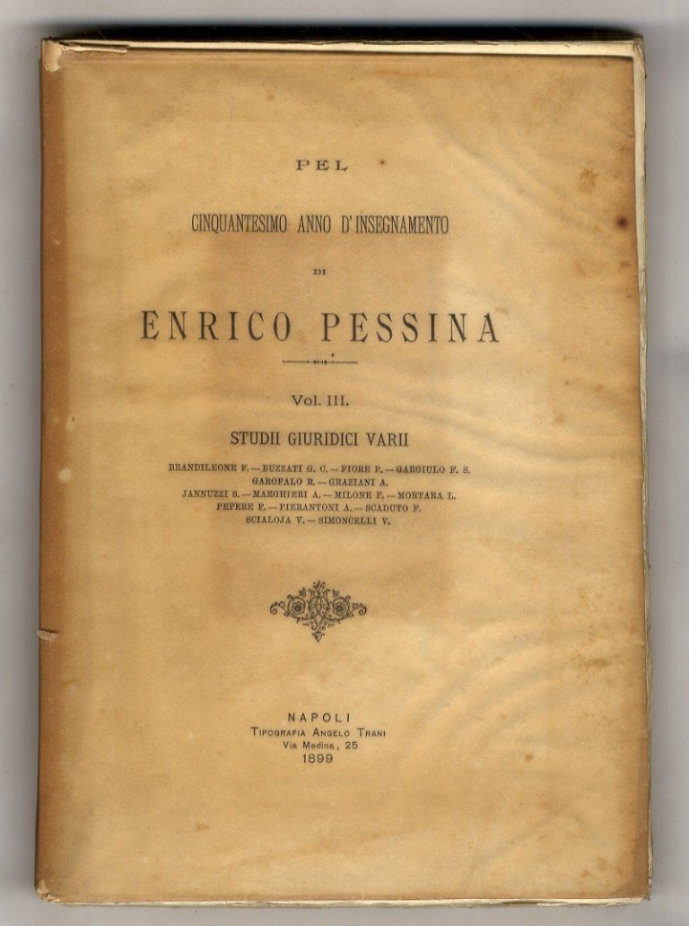 Cinquantesimo (Pel) anno d'insegnamento di Enrico Pessina: Scritti del Pessina. Studii di diritto penale. Studii giuridici varii. | Libri antichi e moderni |