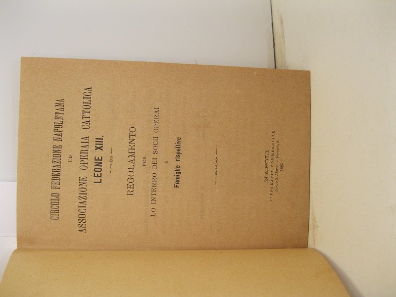 Circolo federazione napoletana ed associazione operaia cattolica Leone XIII. Regolamento per lo interro dei socii operari e famiglie rispettive | Libri antichi e moderni |