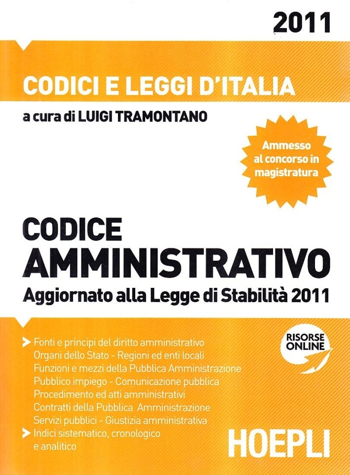 Codice amministrativo 2011, Milano, Casa Editrice Libraria Ulrico Hoepli, 2011 | Libri antichi e moderni | Tramontano L.