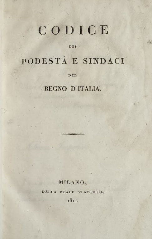 CODICE DEI PODESTÀ E SINDACI DEL REGNO D'ITALIA