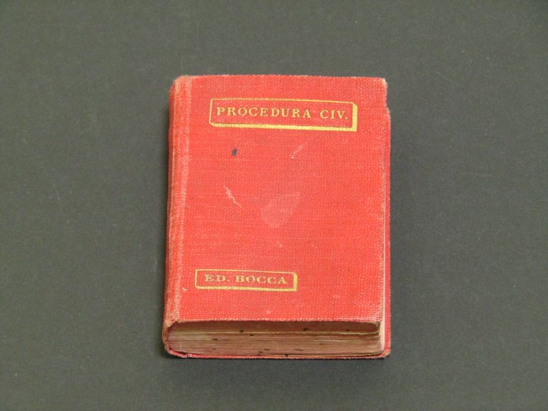 Codice di procedura civile . Torino, Fratelli Bocca 1901 italiano, 7 5 pp.427 La copertina è in brossura con alette, pagine ingiallite, macchie d'umidità.