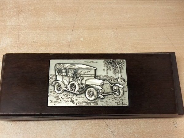 Cofanetto 26 x 10 x 3 porta fisches.lastra della fiat zero firmata e incisa la data 1913,in feltro.