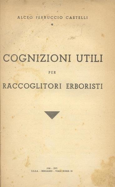 COGNIZIONI UTILI PER RACCOGLITORI ERBORISTI. | Libri antichi e moderni | Castelli Alceo Ferruccio.
