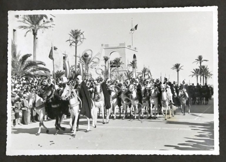 Colonialismo italiano - Fotografia Truppe del Presidio di Tripoli - Sfilano gli Spahis - anni '30
